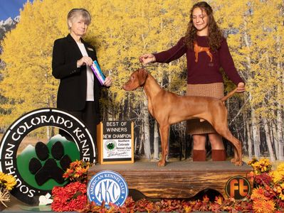 Smash finished his Championship at just over a year old from the Bred-By class after being shown selectively. Smash spent lots of his time training for and running at field trials and collecting several placements and won an open derby stake for his first juvie point. He finished his championship with 3 majors and many wins under sporting specialists. He also received Best of Breed from the classes. We are so excited about the promising future of this beautiful and birdy boy!